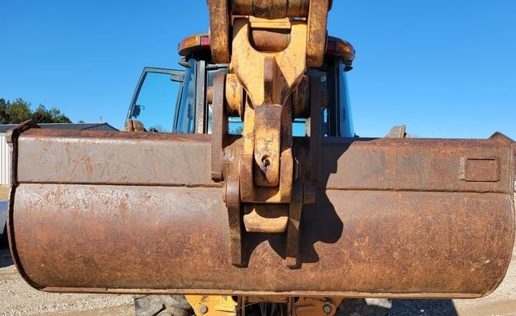 The backhoe features an extendable stick, allowing greater reach and digging depth for trenching and excavation work. It also includes a hydraulic thumb for handling rocks, debris, and demolition materials. The 60-inch backhoe bucket with bolt-on cutting edge provides excellent digging performance.