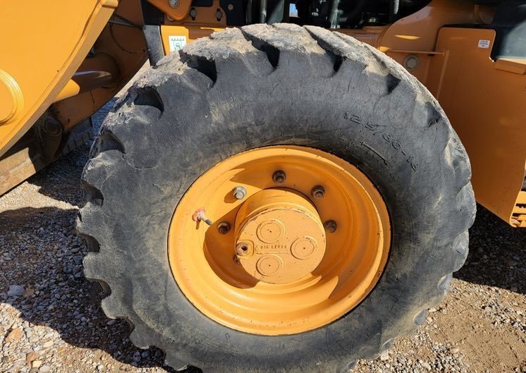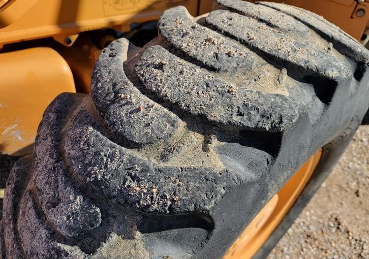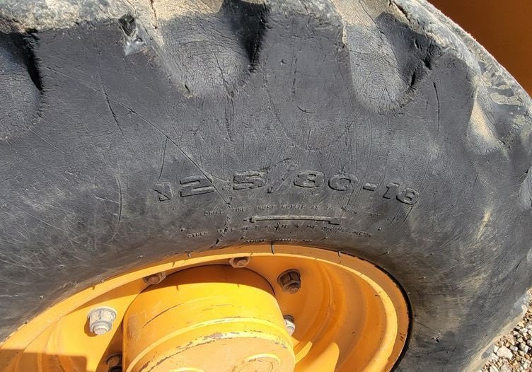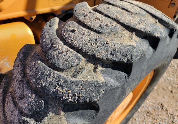 The machine rides on 12.5/80-18 front tires and 21L-24 rear tires, offering durability, strong traction, and stability across a variety of jobsite conditions.